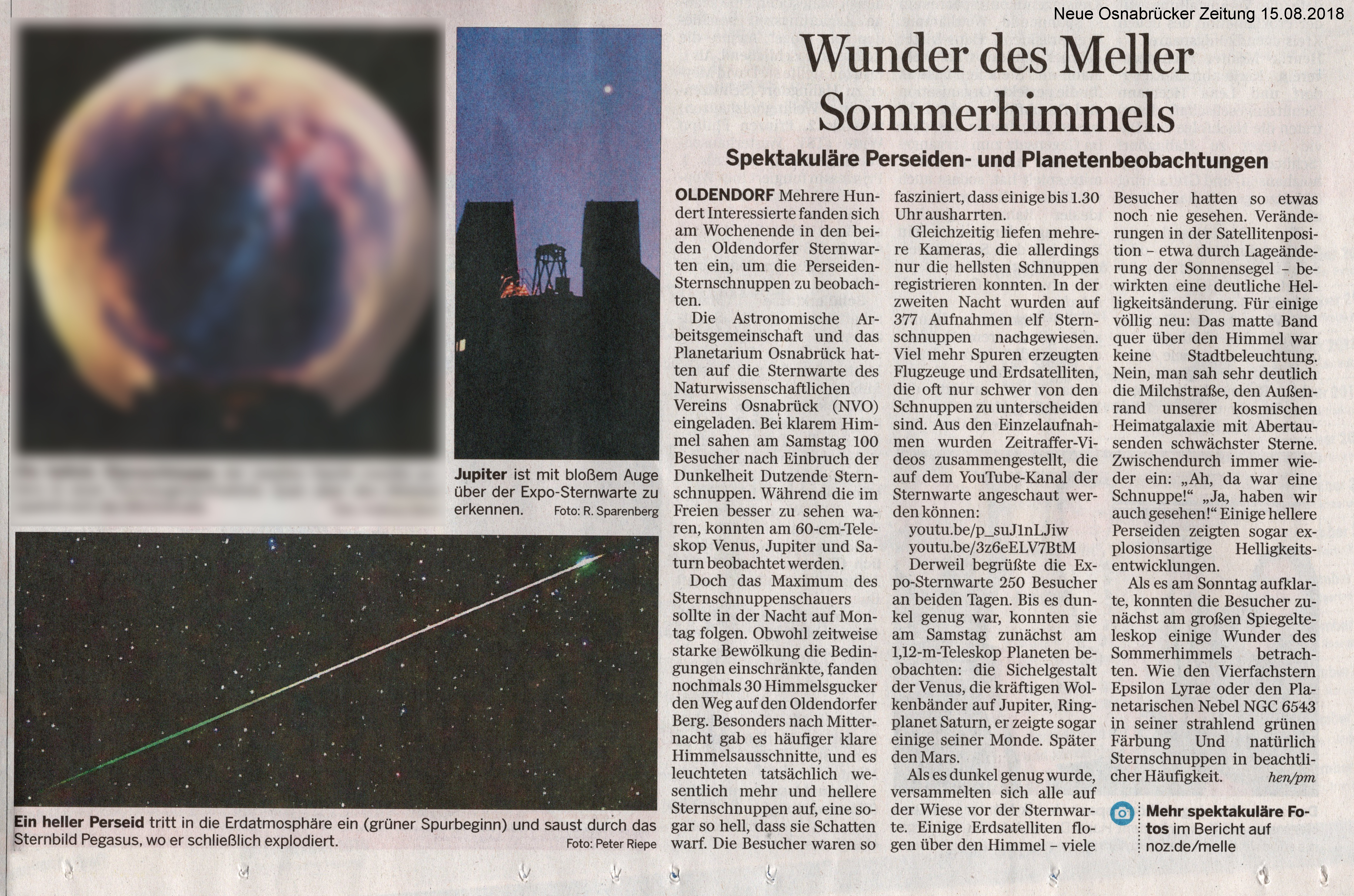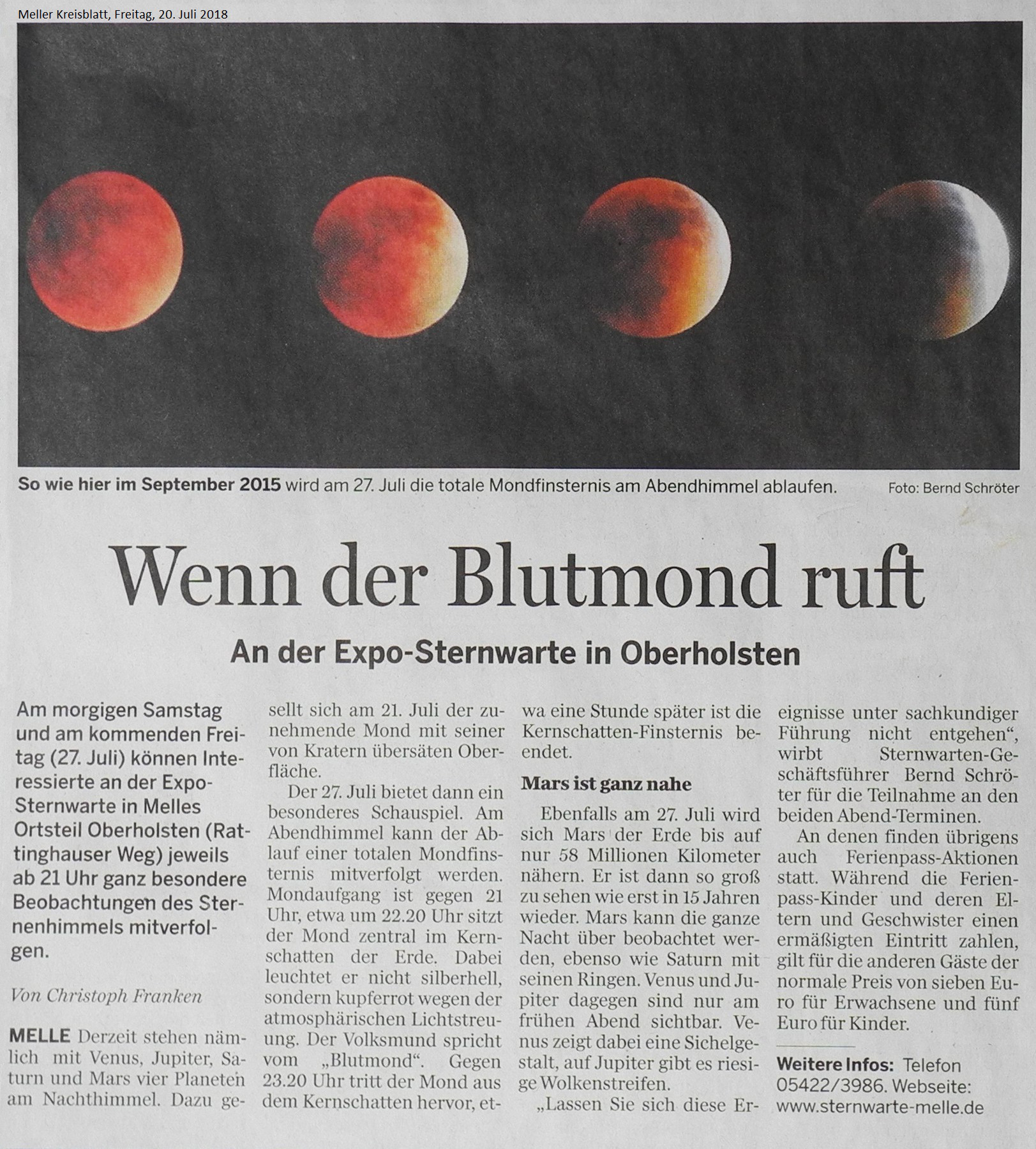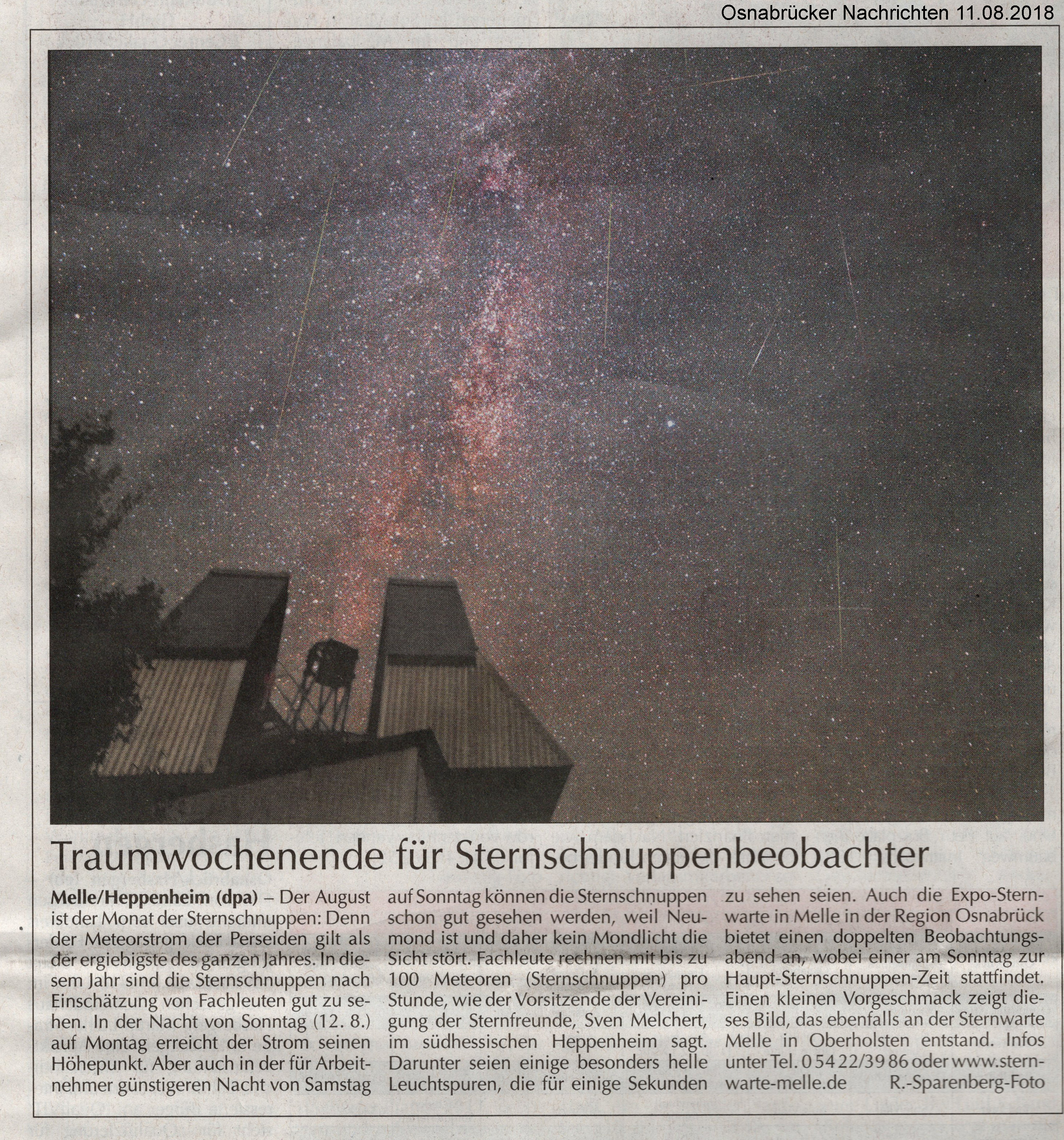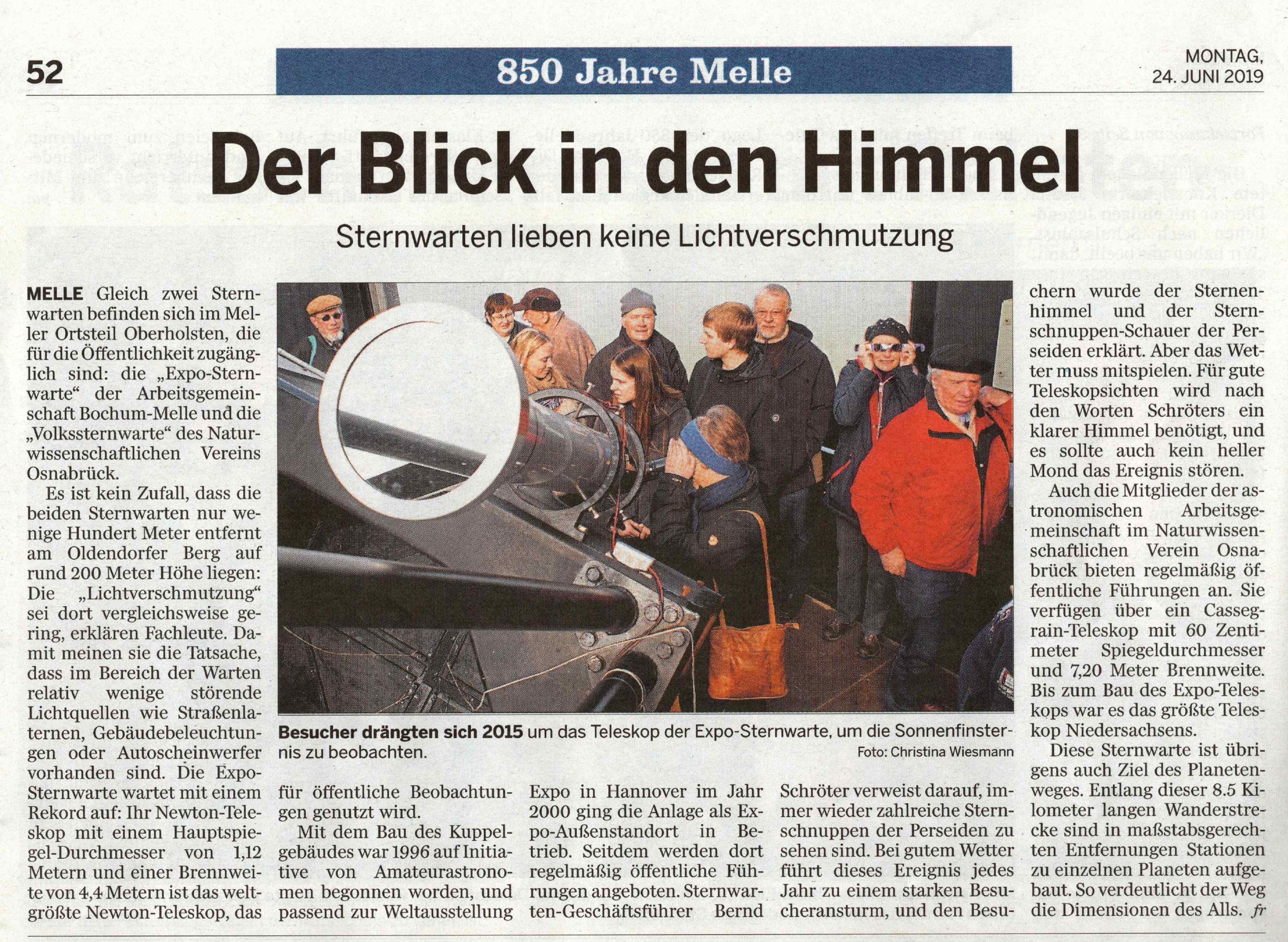 Die EXPO-Sternwarte Melle in der örtlichen Presse.